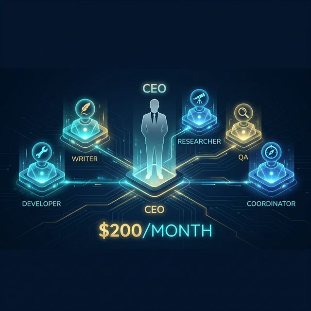 One human CEO. Five specialized AI agents. Each with a defined role, platform, and cost. The result: a full course platform with authentication, payments, 31 interactive lessons, worksheets, and a coaching bot — built in under two weeks.